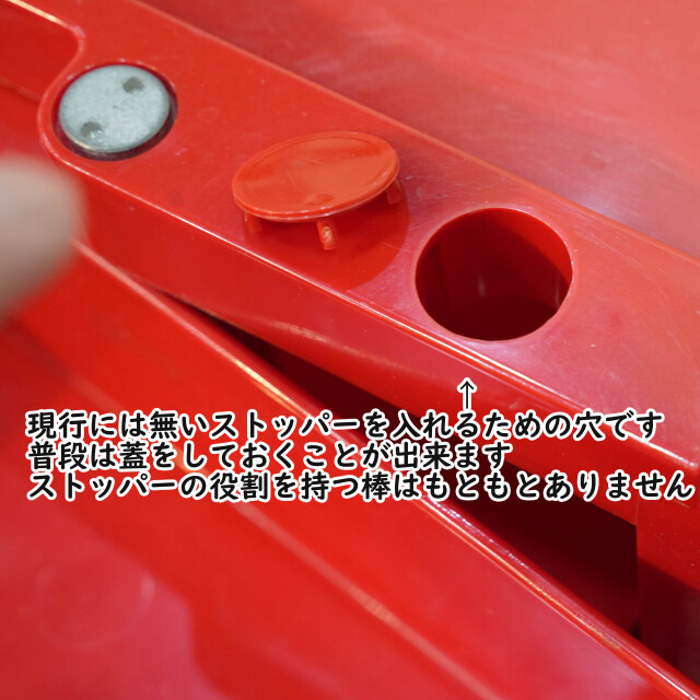 トレーが開かないようにするために棒状のストッパーを入れるための穴が開いています。