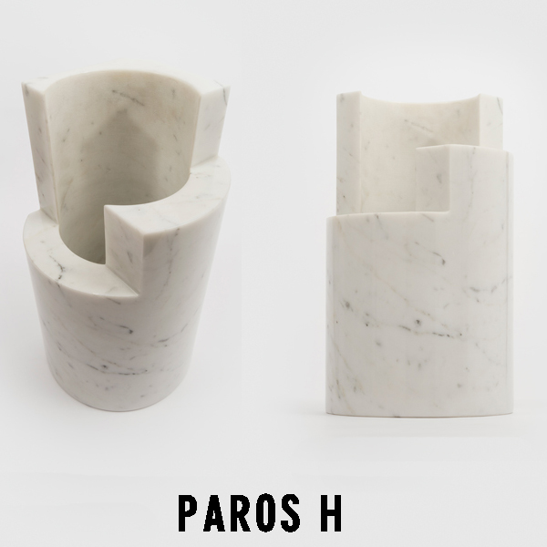 エンツォ・マーリが1964年にデザインをしたパロスは、円や円柱に幾何学的な比率でカットを入れて作られたマーブル(大理石)シリーズです。