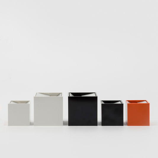 メラミン素材で作られた立方体にアルミニウムの灰受けを入れることで構成されています。