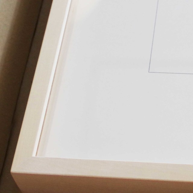シルクスクリーン印刷された厚紙 フレーム/ガラス、ライムウッド 時計部分/アルミニウム、単三電池使用ムーブメント |