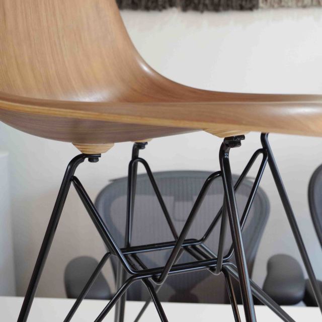 イームズウッドシェルチェアはイームズ夫妻の長年の夢であったプライウッド一体成型のシェルチェアです。