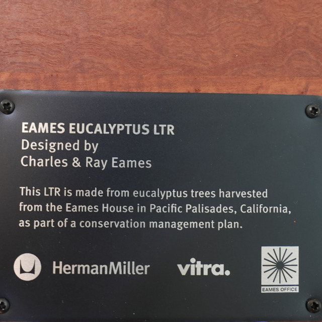その際にいくつか限定品が発売されましたが、このユーカリプタステーブルはイームズハウスに生えていた伐採されたユーカリの木を利用して天板が作られています。