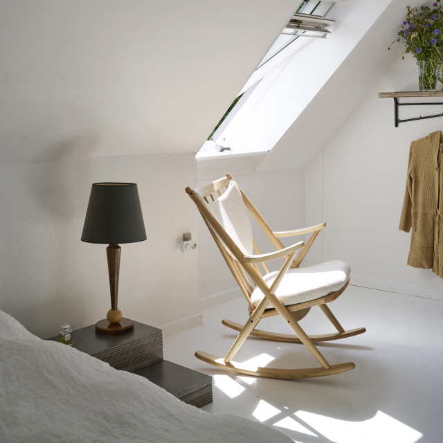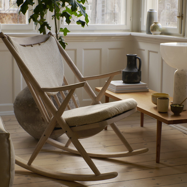 日本のロイヤルファニチャーコレクションが展開するgreenholt(グリーンホルト)から発売されたFRANK’s ROCKING(フランクズロッキング)は、Frank Reenskaug(フランク・レンスコー)が1958年にデザインをしたロッキングチェア「No.182」を元に復刻しています。