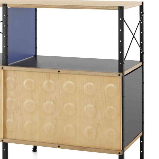 1950年にイームズ夫妻によりデザインしたこの”イームズストレージユニット”は、「モジュール方式」や「ハイテク」という言葉が業界で一般的に使われるようになる以前から、夫妻が設計する製品に工業生産技術を取り入れていました。
