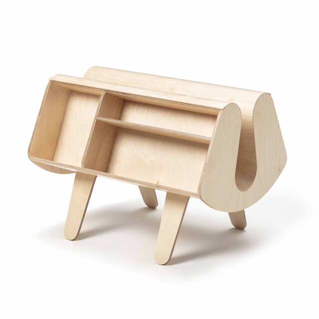 左右の棚と4本の脚がパニア(荷カゴ)を背負うロバのように見えることからドンキーと名付けられ、後にイギリスの出版社“Penguin paperbacks”の本がぴったり収まることから、ペンギンドンキーに改名されました。