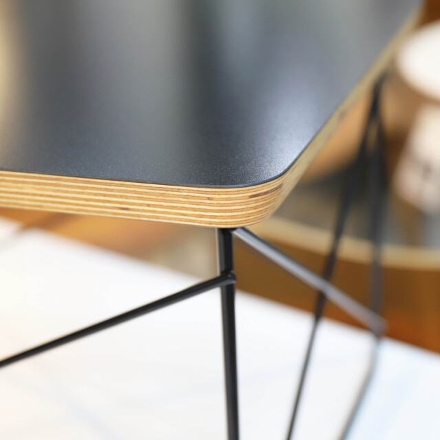 合板とスチールワイヤーの組み合わせにより軽量ながらがっしりしたテーブルとなっています。