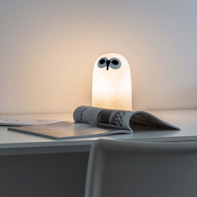 「バード バイ トイッカ」に見られる吹きガラスの質感を再現した、やさしい光のポータブル照明、冬の夕食を暖かく照らす間接照明として、夜の子供部屋をやさしく照らす道しるべとして、幸運の鳥フクロウを、あなたのお家に迎え入れてみてはいかがでしょう。