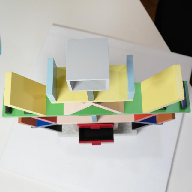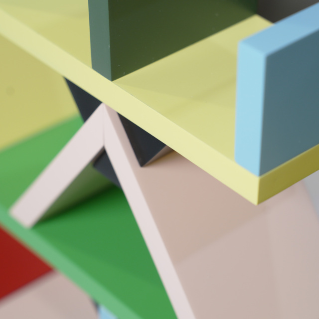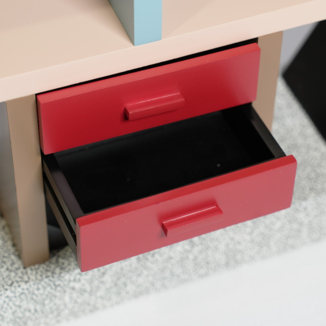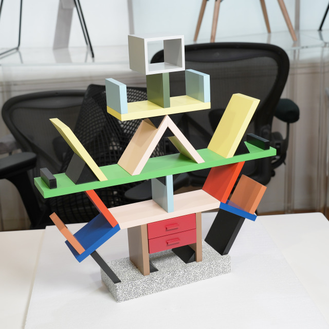 1981年にエットーレ・ソットサスによってデザインされたアバンギャルドなシェルフ「カールトン」をミニチュアにしたものです。ミニチュアなので本棚としては使えません、サイズをよくご覧ください。