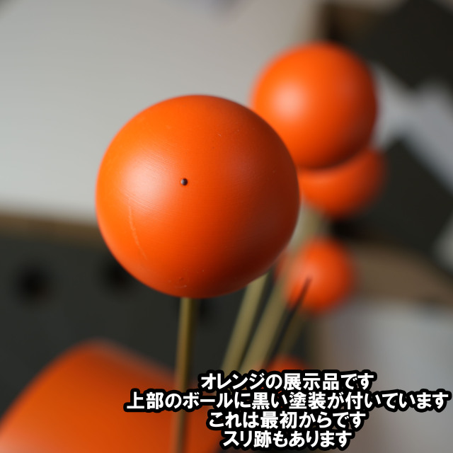 展示品は壁に掛けられて稼働はしていませんでした。オレンジの展示品だけ画像の通りの状態です。