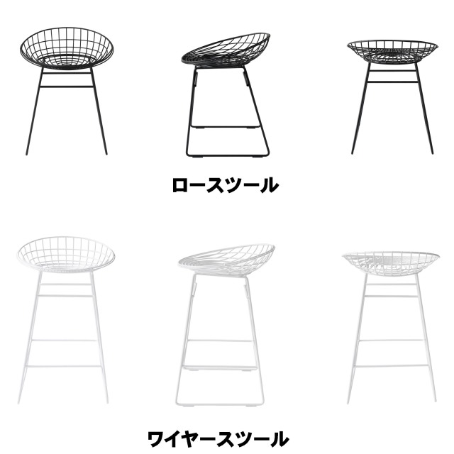 | サイズ | ロースツール 幅460 奥450 高570 座面高460 mm ハイスツール 幅460 奥450 高760 座面高640 mm |