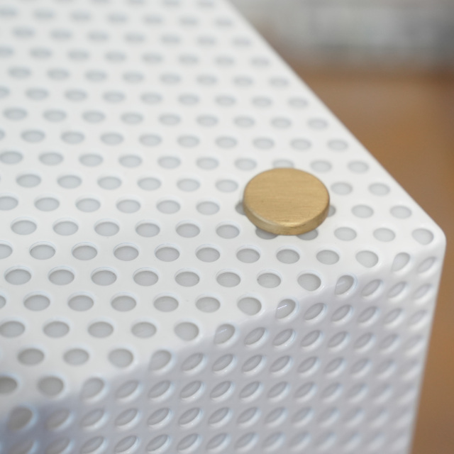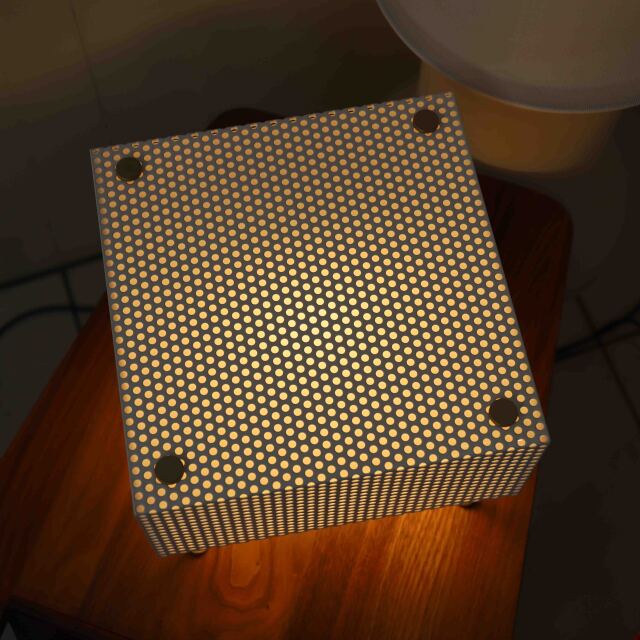 G61は乳白アクリルの上に穴あきスチール板が施されたカバーと乳白アクリルのサイドパネルで構成されています。