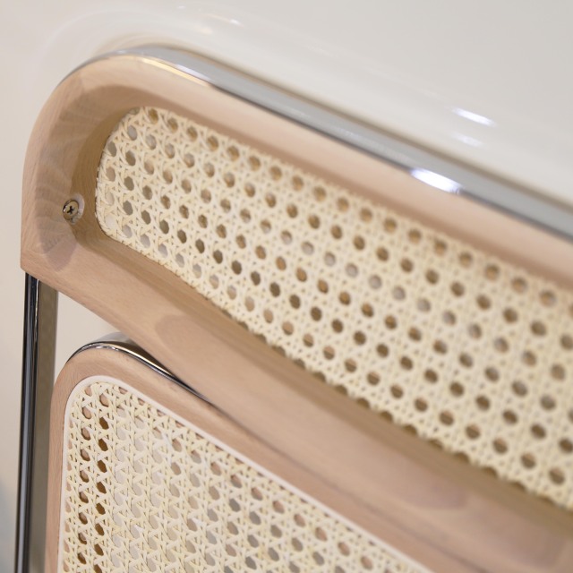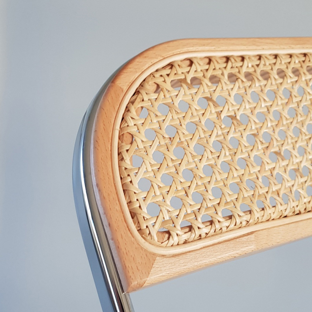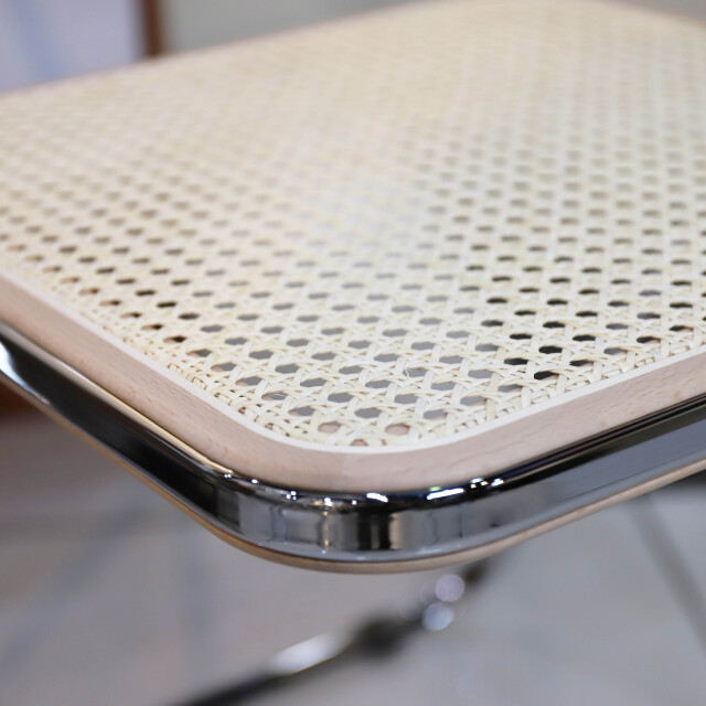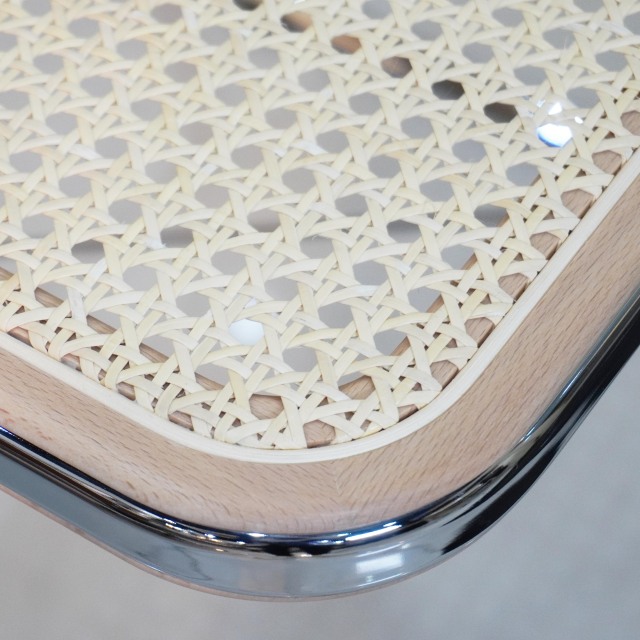 フレーム:スチール(クロームメッキ塗装、内部空洞) 背・座面:ラタン(籐) 接合部:アルミとプラスチック |