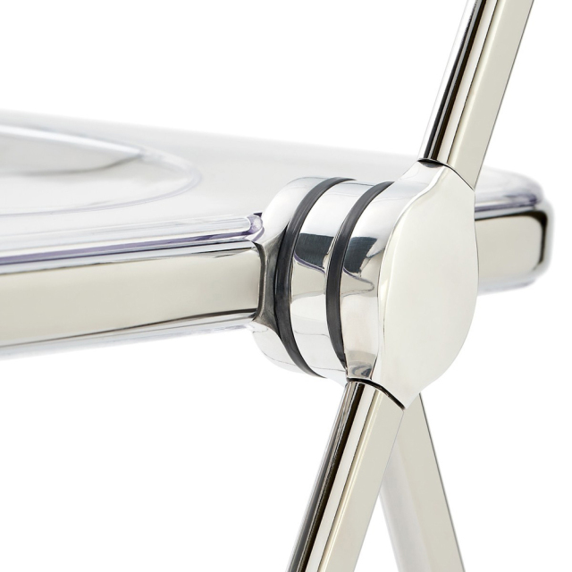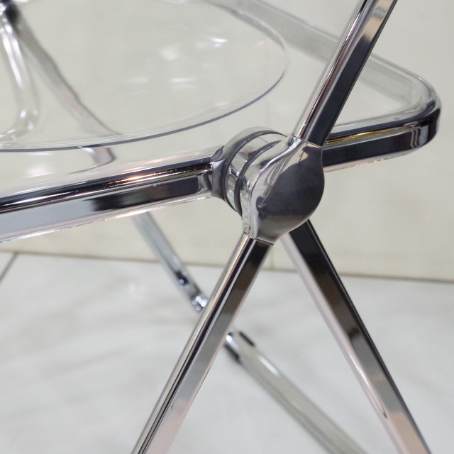 フレーム:スチール(クロームメッキ塗装、内部空洞) 背・座面:ポリカーボネート 接合部:アルミとプラスチック |