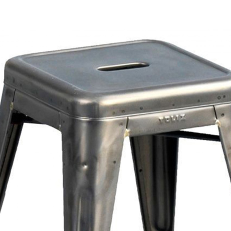 スチールに亜鉛メッキを施した椅子は、頑丈で見た目にも良く、室内でも屋外でも使用できる機能的なデザインです。
