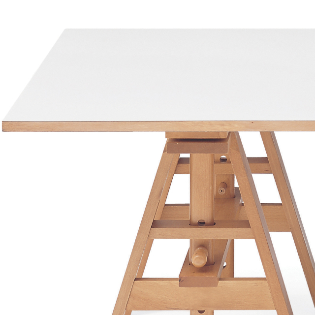高さ調節可能な脚部に天板を載せるだけのシンプルながら脚の幅も調整ができる優れたデザインです。